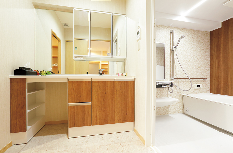ご夫婦それぞれの趣味の時間も充実できるよう、できるだけ間仕切りをなくし、広くてしかも収納たっぷりの空間づくりを心掛けました。また、家事動線がコンパクトになるようにレイアウトを工夫。お手入れにもなるべく手間がかからない商品をご提案しました。