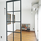 理想をはっきりとお持ちの施主様なので、画像を送り合ってイメージを共有。提案を練り上げ、建具なども一緒にリサーチしました。インテリアを壊さないよう、インターホンをリビングから見えない場所に取り付けるなどの提案も。やりがいのあるリフォームでした。