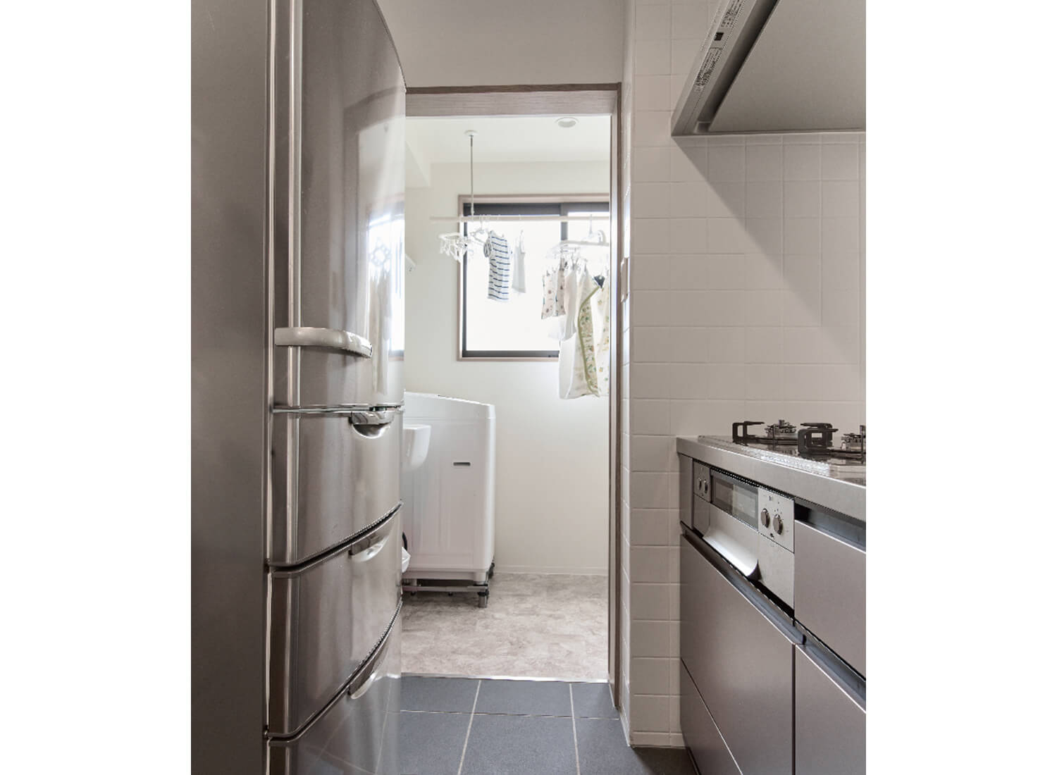 家事動線を考えてベランダにしつらえたランドリースペースは、LDKからもアクセスでき、動線が短くなって奥様の大のお気に入りに。LDKにはペアガラスを採用。寒さや騒音対策に配慮して、家族団らんにしっかり貢献できました。