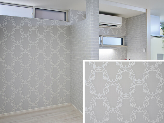 壁紙のサンプルをたくさん持ってきていただいて、その中からセレクトしました。選ぶ時間もとても楽しかったです。お気に入りの家具や食器のデザインにもマッチし、エレガントな空間を作ってくれています。