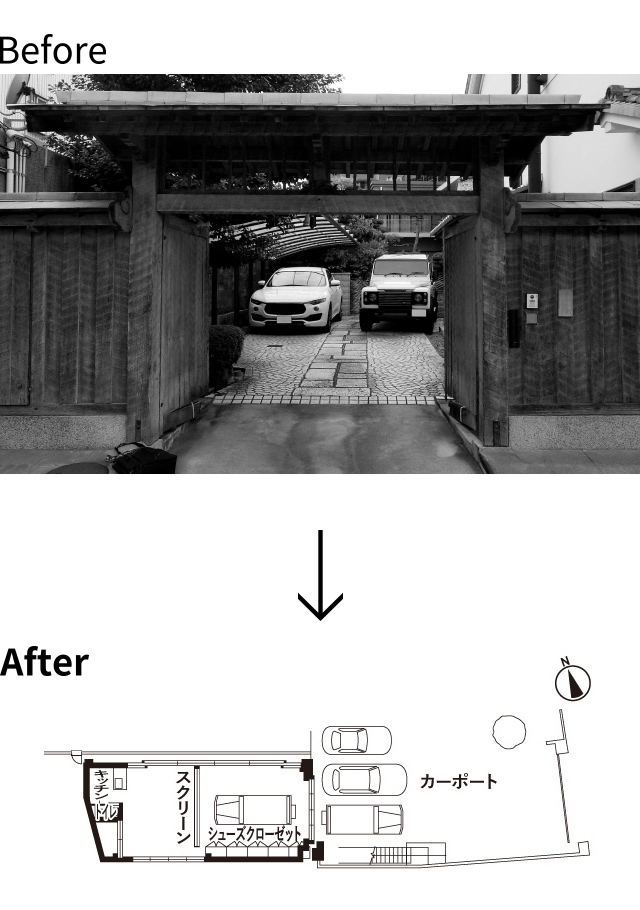 プライベート空間をしっかり確保するために設置したシャッターゲート。安全面だけでなく、静音性も高く快適です。