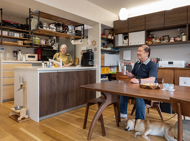 お子様が独立され、ご主人もお仕事がひと段落されるなど、ライフスタイルが大きく変わったK様。愛犬と一緒にゆったりとした時間を楽しむためのリフォームを決断されました。大きなLDKの心地よさにご夫婦も大満足です。