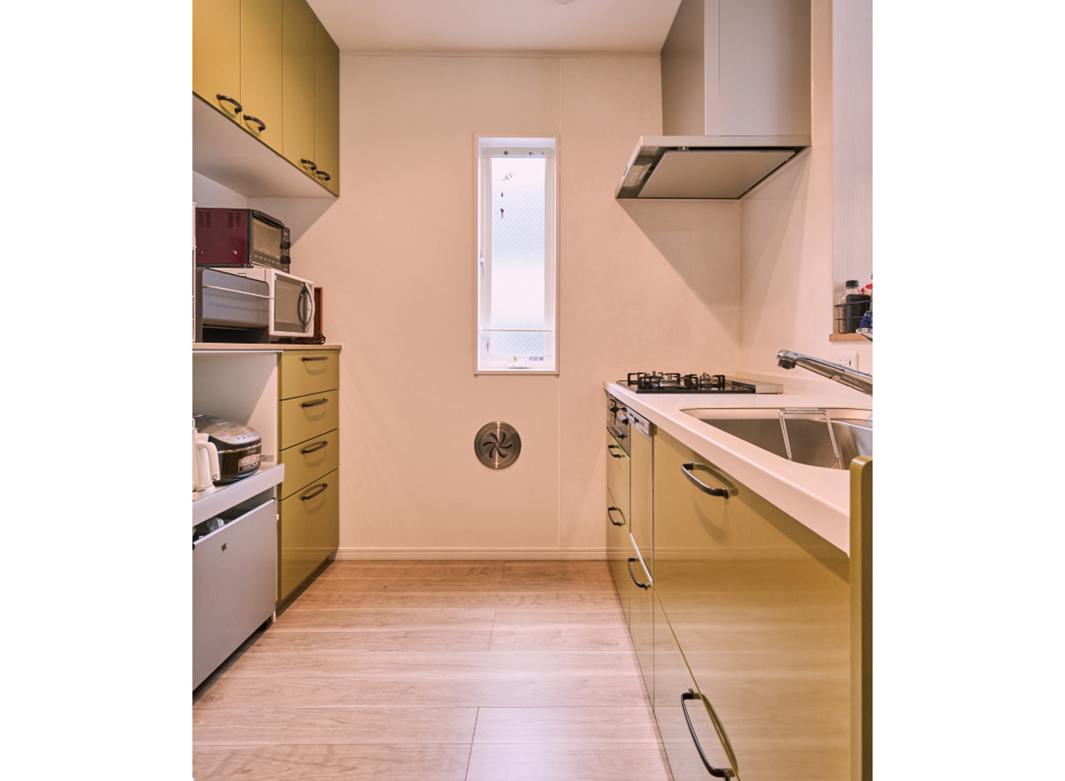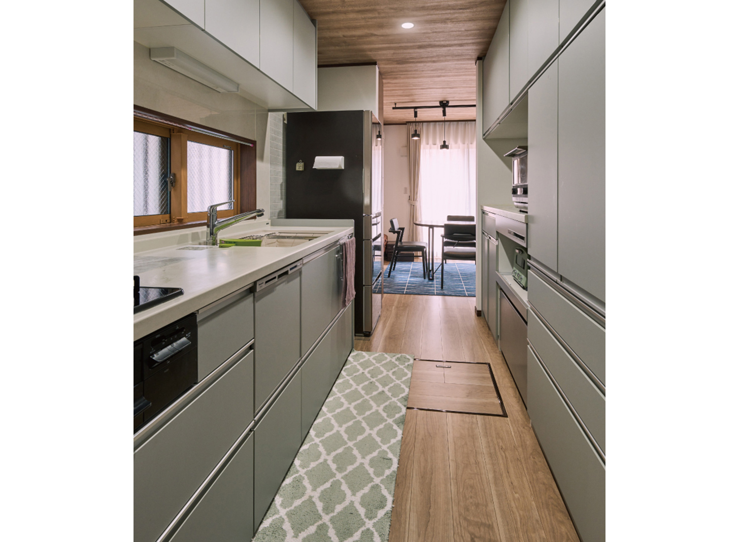 子世帯のキッチンは、奥様が選んだオリーブグリーンのカラーで、やわらかな印象に仕上がっています。