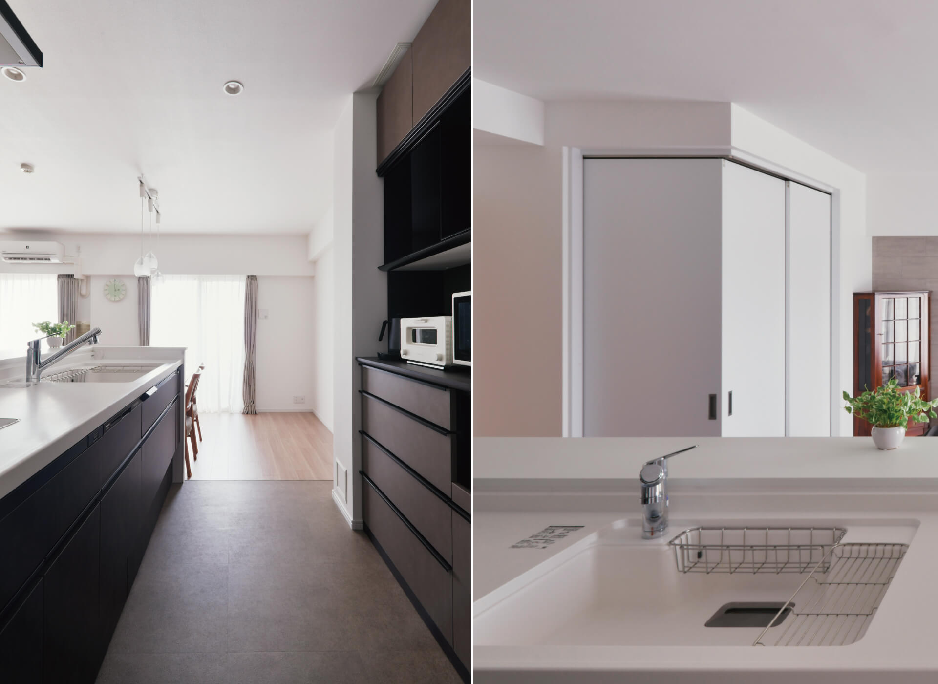 ダイニングテーブルと横並びの対面キッチンにずっと憧れていました。段差を活用した収納も家具のように仕上がって、違和感なくLDKに溶け込んでくれて大満足です!