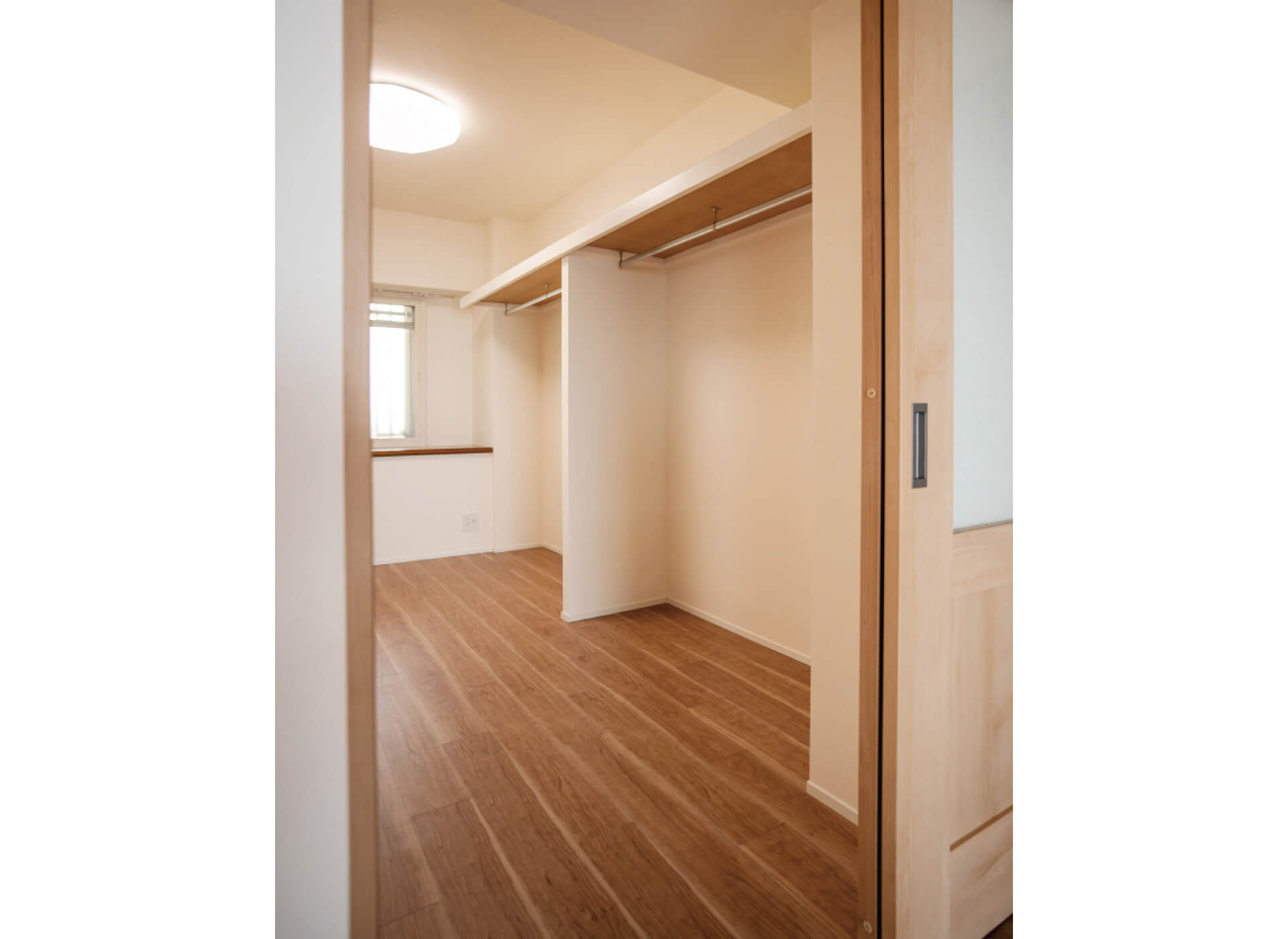 玄関からも、ベッド横の扉からもアクセスできるウォークインクローゼット。お洋服や季節ものがたっぷり入る大きさです。