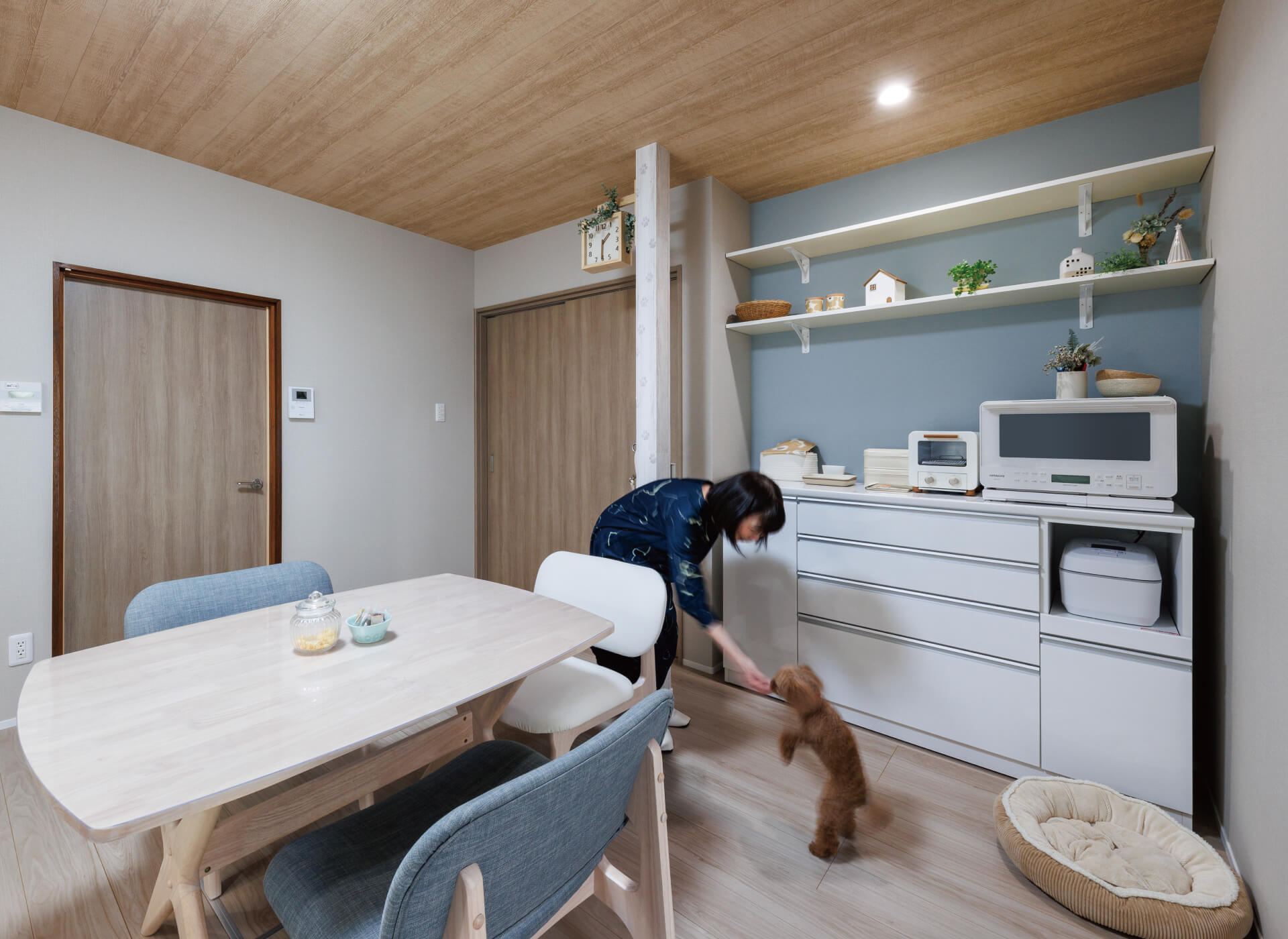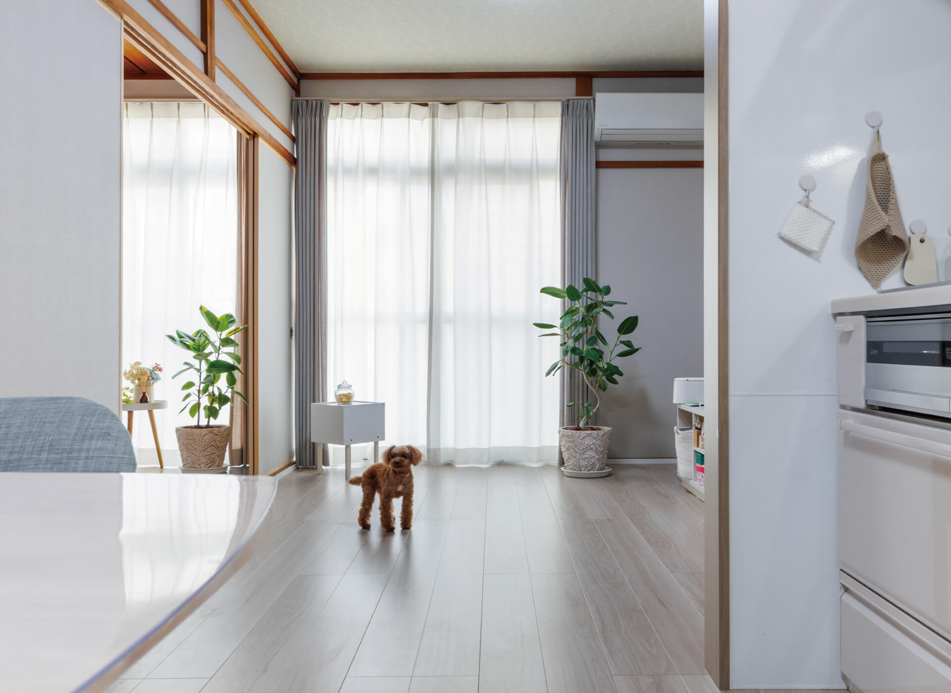 愛犬と心地よく暮らすために、滑りにくさに配慮した床をチョイス。愛犬が家中を元気に駆け回れるようになりました。収納スペースも新たに造作し、すっきりと整頓された住まいへと生まれ変わりました。