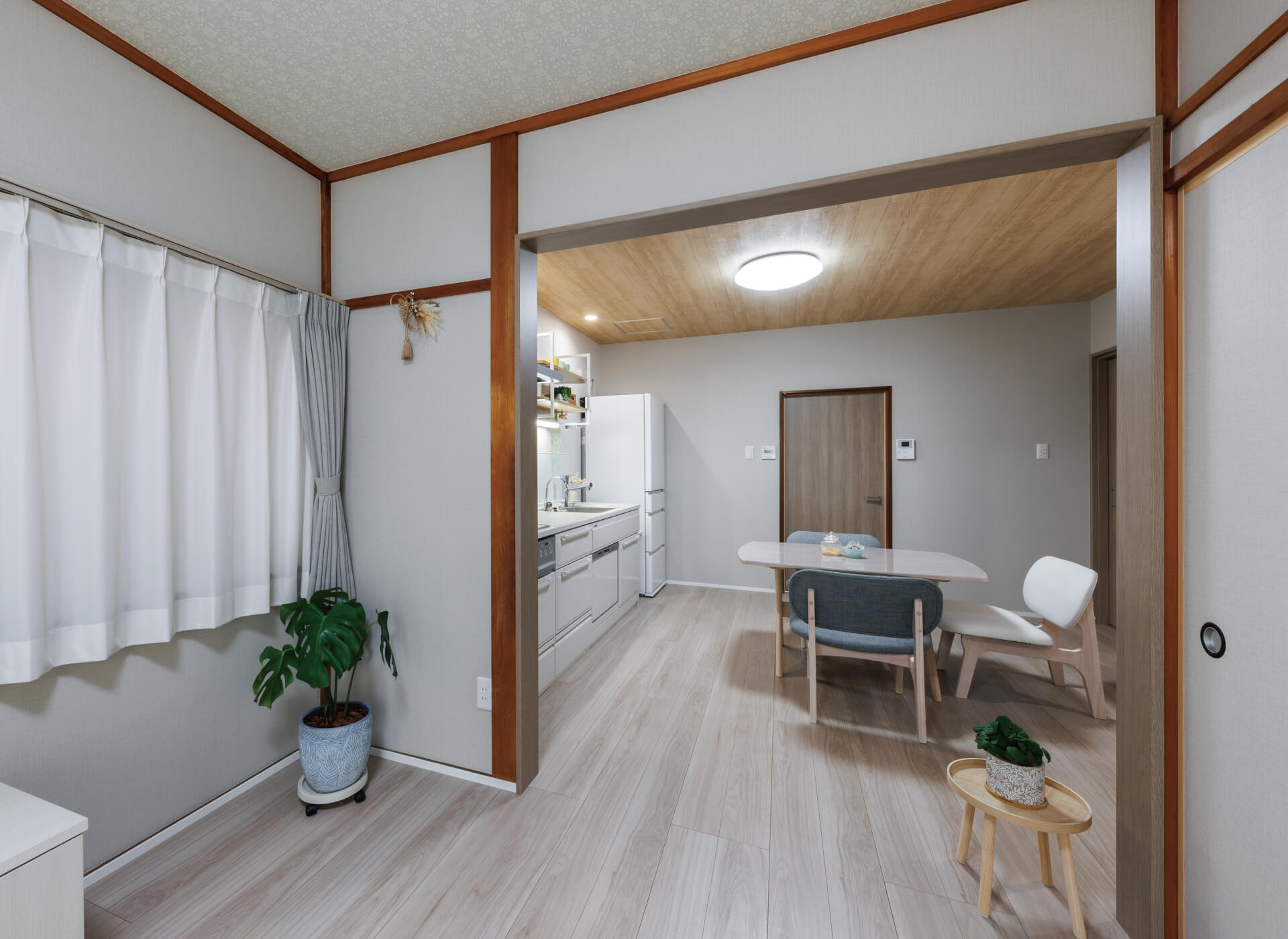 和室を洋室のリビングへと一新。畳からフローリングになったことで、汚れもきれいに拭き取れるので、掃除がラクになりました。
