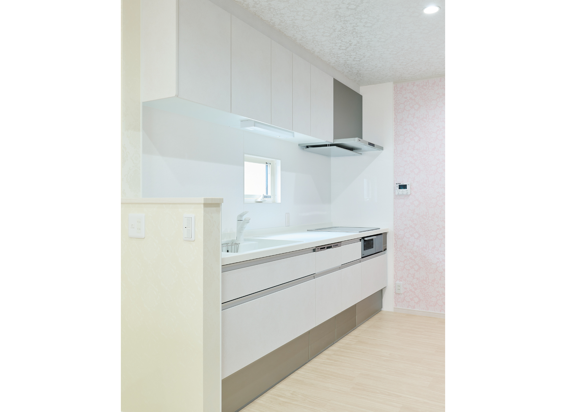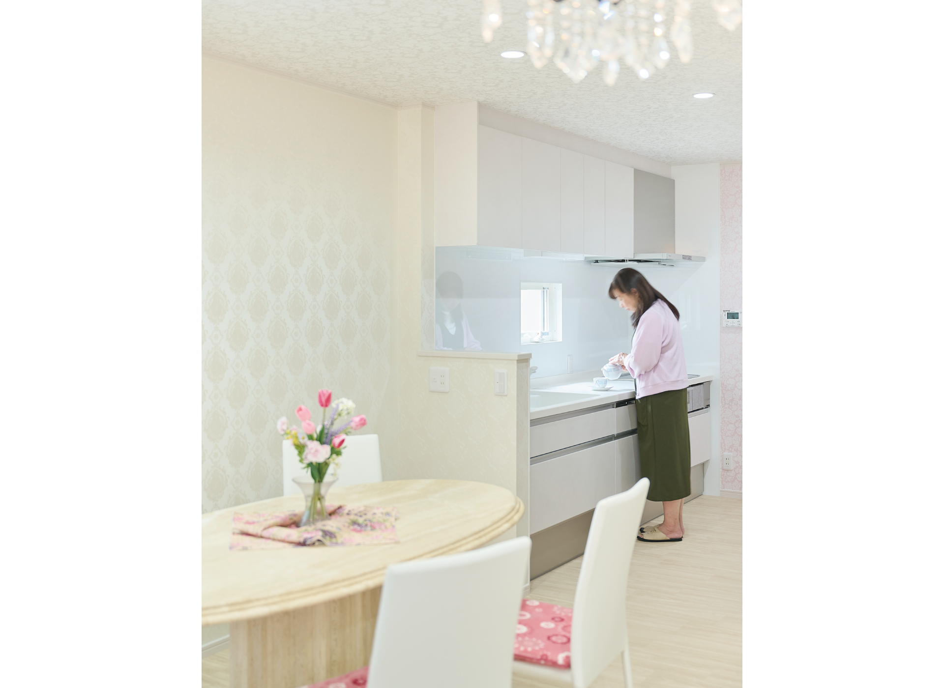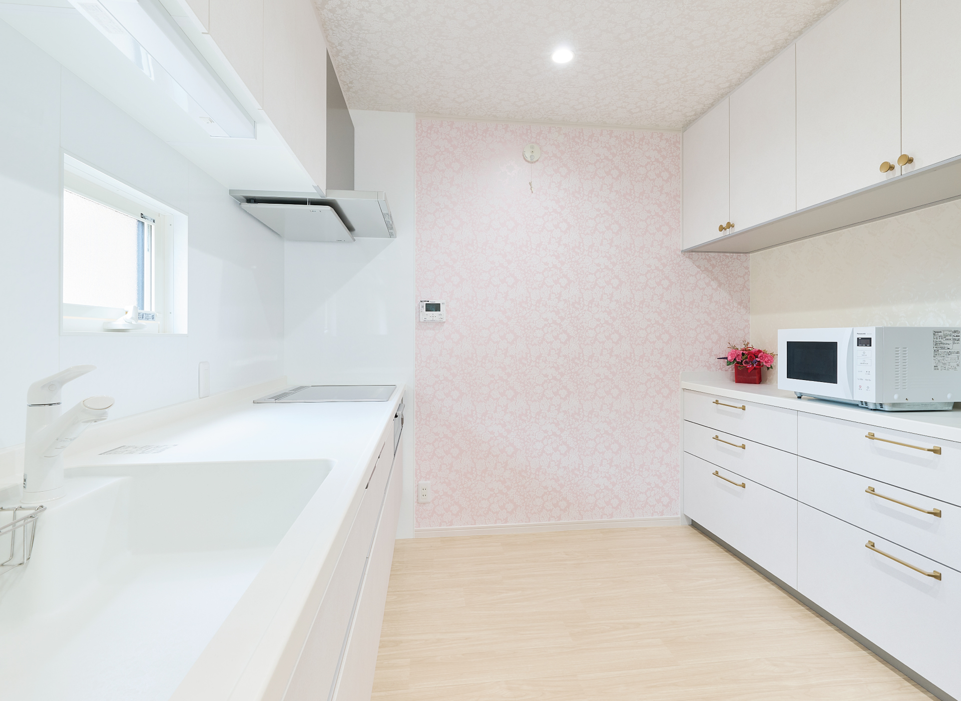 キッチン入れ替えと同時にヴィンテージ調だったLDKの雰囲気を一新されたI様。リビング・ダイニングとキッチンの間にある壁を一部取り払い、レイアウトは大きく変えずに開放感を実現。フレンチ・シックスタイルで内装を統一され、理想のエレガント空間を叶えられました。