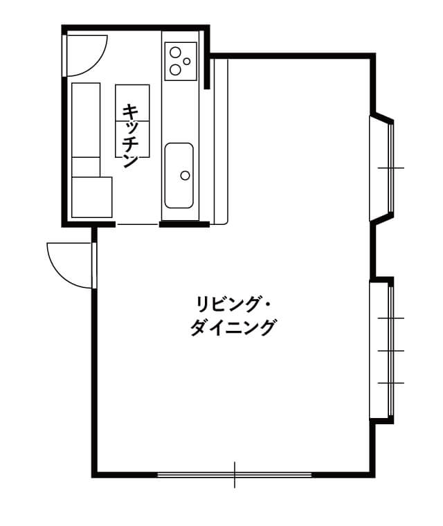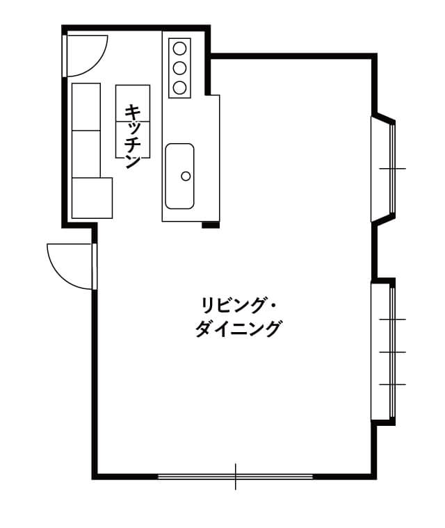 対面キッチンのダイニング側には扉付きの収納スペースを。こまごましたものを入れられて、LDKがすっきり片付きます。