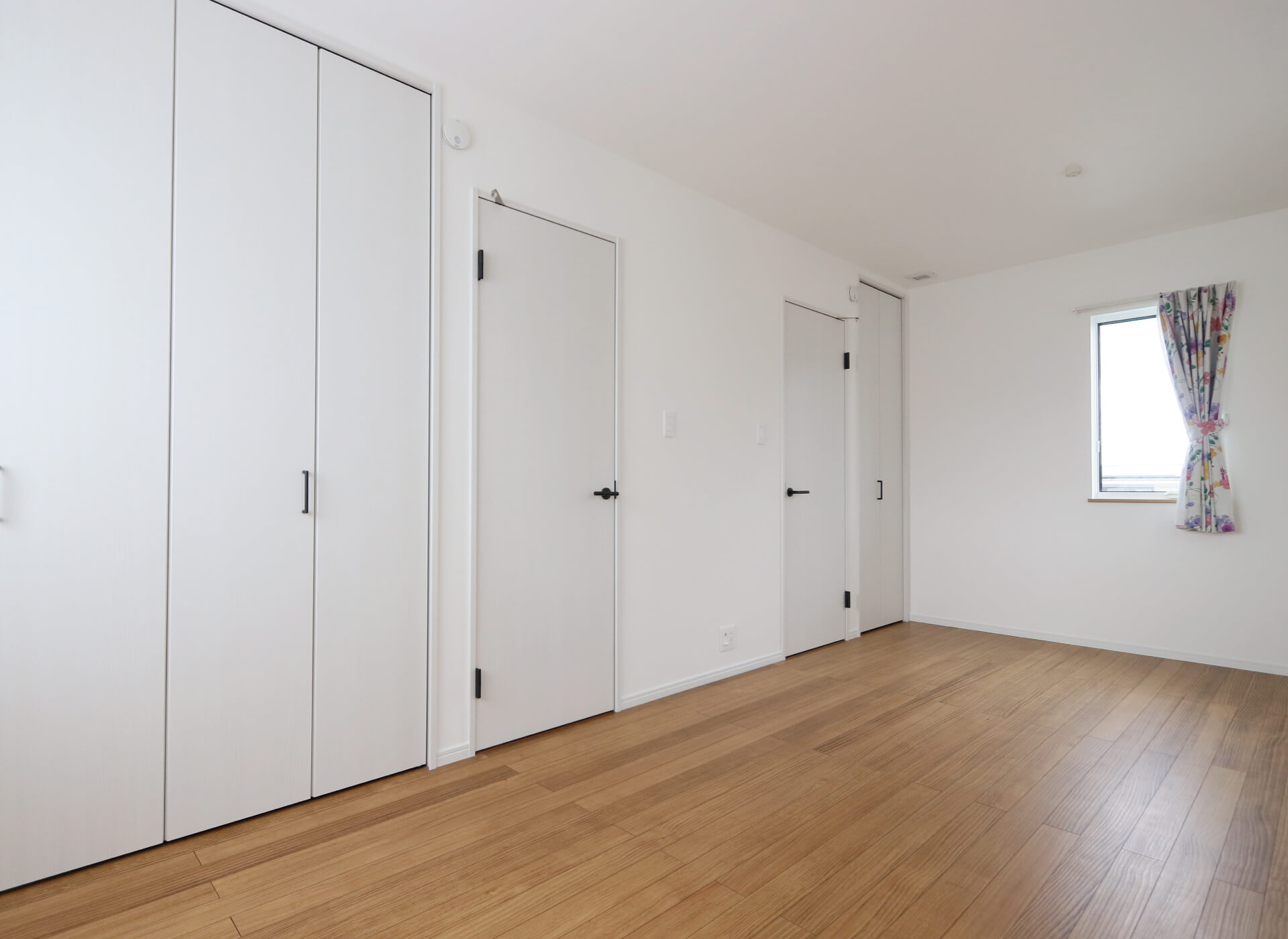 ホワイトアッシュ柄の建具とオークの無垢フローリングを採用し、シンプルでかわいく。成長に合わせて2室に分けられる仕様です。