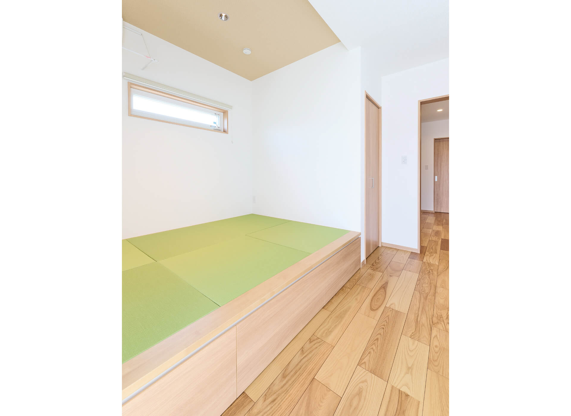 お母様の居室には小上がりの畳スペースを設け、立ち座りがしやすいように。介助する人も一緒にくつろげるスペースになりました。