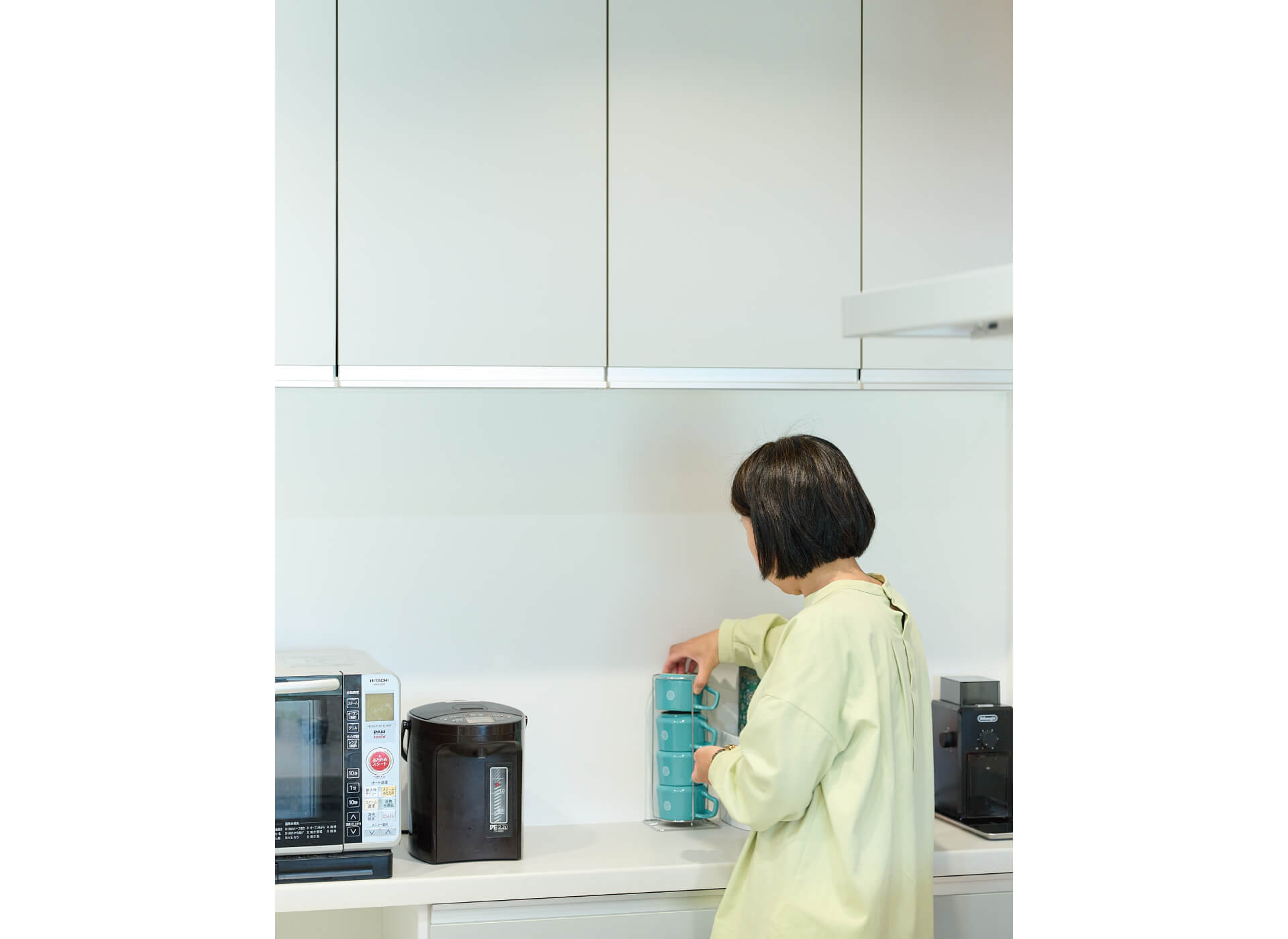 高齢の母と安心して暮らせる家にしたいという夢が叶いました。動線や水廻りが機能的なのはもちろん、断熱・気密性も高くして室内が一年中快適!キッチン扉の淡いグリーンがとくにお気に入りで、毎日の家事が楽しくなりました。