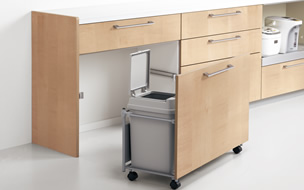 種類も量も多いキッチン収納。奥まで見渡せる引き出し式収納なら