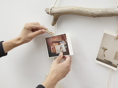 ひもの部分に、木製ピンチをつかってポストカードを自由にとめていってください。
