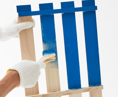 塗料が乾いたら、すのこの側面に接着剤を塗り、側板を釘で固定します。