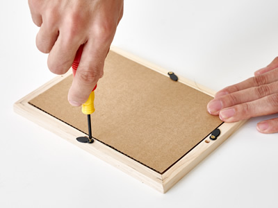フォトフレームの裏の爪をすべてドライバーではずします。
