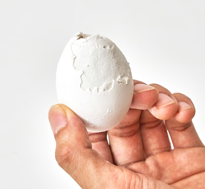 ゆで卵の殻をむくように、ぴりぴりと殻をむいていきます。お好みで紙やすりで磨いて整えてください。