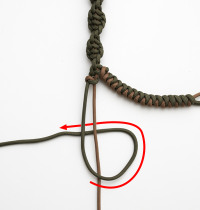 ⑥緑のパラコードが茶の上から 下を通るように輪っかをつくる