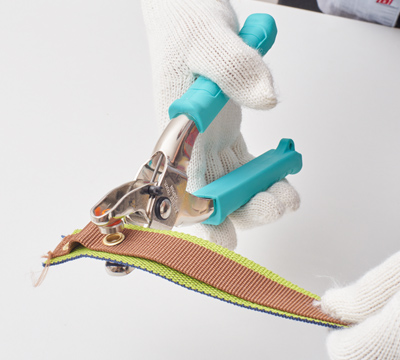 ナイロンベルトにレザーポンチなどでハトメ用の下穴をあけます。
