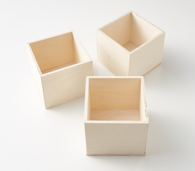 木板を木箱の底板用3枚と、外側用の3枚にカットしてください。 外側用左右の木板は木箱の大きさに幅をぴったり合わせますが、真ん中の木板の幅は木箱より左右を少し大きめ(木板の厚み分)にカットします。
