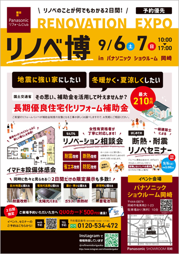 開催場所:パナソニック ショウルーム 岡崎(岡崎市竜美南2-1-23)