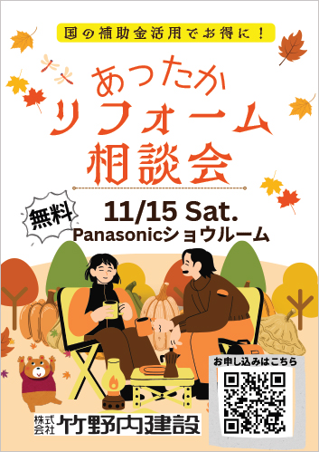 本イベントでは、「住宅省エネキャンペーン2025」などの補助制度を活用したリフォームのご相談も可能です。 断熱窓の交換や高効率給湯器の導入など、対象工事に該当する場合は補助金を受けられる可能性があります。 制度の詳細や申請条件についても、当日スタッフが丁寧にご案内いたします。