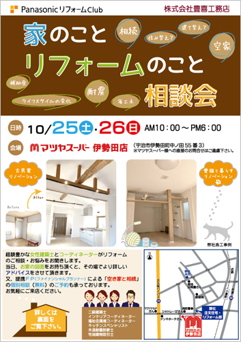 マツヤスーパー伊勢田店さんで家のこと・リフォームのこと相談会を開催致します。
