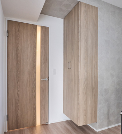 リビングやダイニング、家事室など、収納家具を置きたい場所はいろいろ。でも、インテリアの統一感は崩したくないですよね。パナソニックの多用途収納なら、収納ユニットのサイズも種類も豊富。ドアや床と同じ柄から選べるので、空間全体がすっきりまとまります。