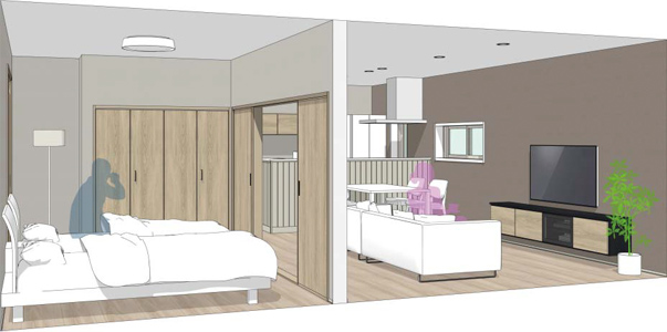 1階に寝室を移すことでワンフロアでの生活が可能に。