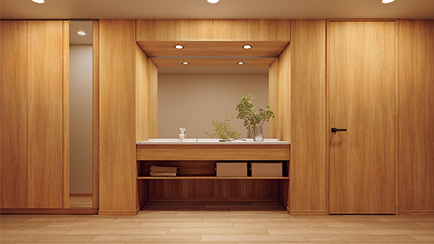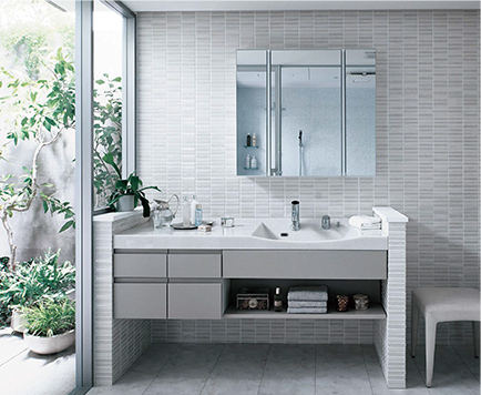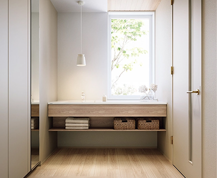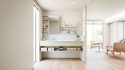 わずかなスキマもつくらず空間にぴったりフィット。美しい洗面空間をつくれます。