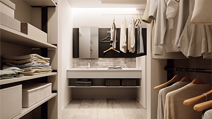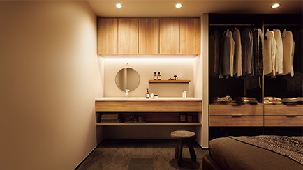おやすみ前の寝室に。疲れを癒す洗面空間。