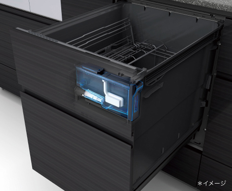 入れ忘れの心配もなし。食器量や汚れ具合に応じて最適な洗剤量が自動的に庫内へ投入されます。