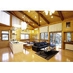 キッチン上部の窓は、冬には暖かい陽が差し込み、採光と省エネを確保した優れもの