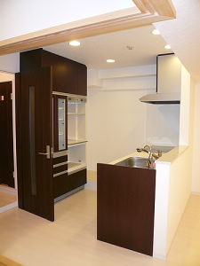 暗くて狭かったマンションのキッチン。 奥様念願の対面キッチンになりました。