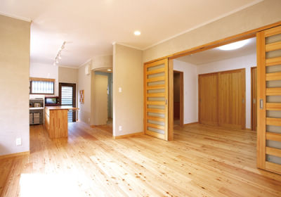 LDKに隣接した寝室。引戸を開ければ、リビングと一続きの空間に