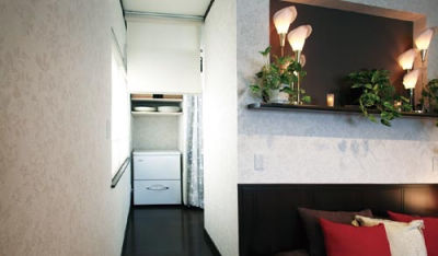 間仕切り壁でベッドルームとクローゼットコーナーを明確に。