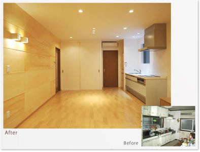 冷蔵庫をはじめ家電製品は、収納しました。雑多なものが隠れるので、すっきりとした印象です。