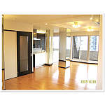 柱は構造上撤去できないので、鏡を貼ってデザイン性と実用性をアップ。ドアは濃い色の木目で床と合せて高級感が出るようにしました。南から入る太陽光が部屋全体に行きわたって明るくなりました。