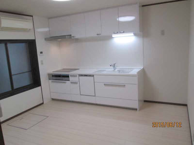 カラーをホワイトにし、明るく清潔感のあるキッチンになりました。内装下げ材色も明るめの色調で、キッチンパネルもネオナイーブ柄ホワイト使用。