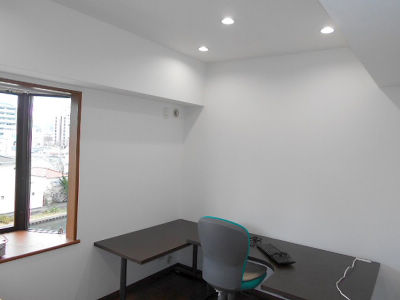 クロスと床を貼り替え、天井にはLEDダウンライトを配置。出窓のカウンター板も新しく変え、明るい部屋になった。
