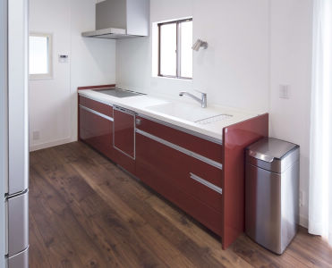 オープンなLDKは、あざやかな赤いキッチンもすぐ目に入ります。