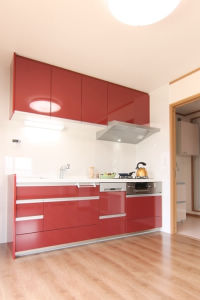限られたスペースの中でも調理スペースが広がるPaPaPaシンクを採用。少なかった収納もカップボードを設置し、しっかり確保。