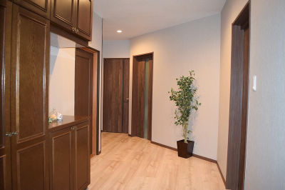 床はLDK、玄関までバリアフリーで続いている。既存のドアは全て撤去し、ベリティスの内装ドア及びアウトセット引き戸に。