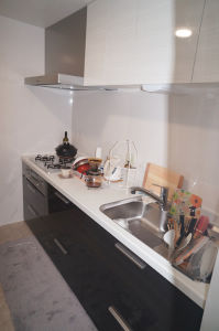 色の効果はやはり凄いです。キッチンパネルにホワイトを使用し、扉の色に落ち着いた使う事でこんなに素敵にスッキリと変身しました。