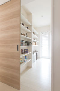 大容量の、パントリーで大家族の食料品や、生活用品がスッキリ納まります。