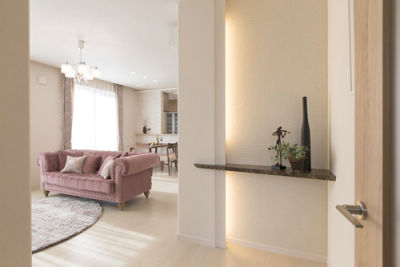 飾り棚も設け、ゆとりのある生活空間が広がります。