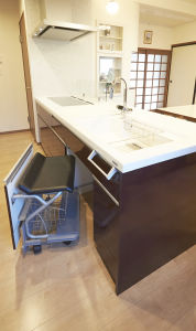 サッと引き出せて、お料理の負担を減らす椅子を内蔵。