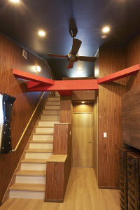 玄関は飾り棚を設け、代々受け継がれてきた家紋が象徴的に出迎えてくれます。