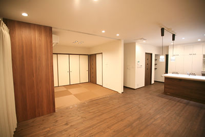 仕切り戸を開放すれば、和室・LDKが一体化し、家族がゆったり過ごせる団らんスペースが出現。