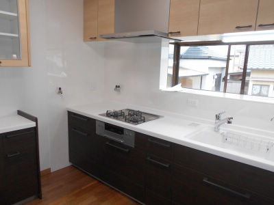 またコンロの奧にはガスオーブンもスッキリ設置できました。